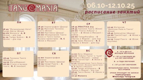 21.08.2025Интенсив "Женская Роль в Танго" с Юлией Зуевой по четвергам. показать